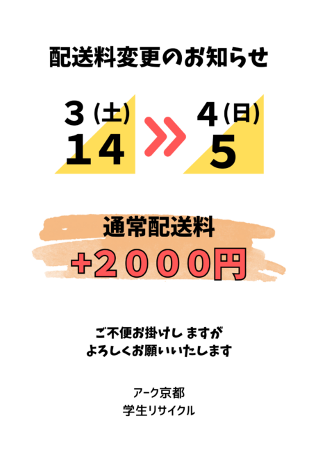 配送料を値上げさせていただきます。
